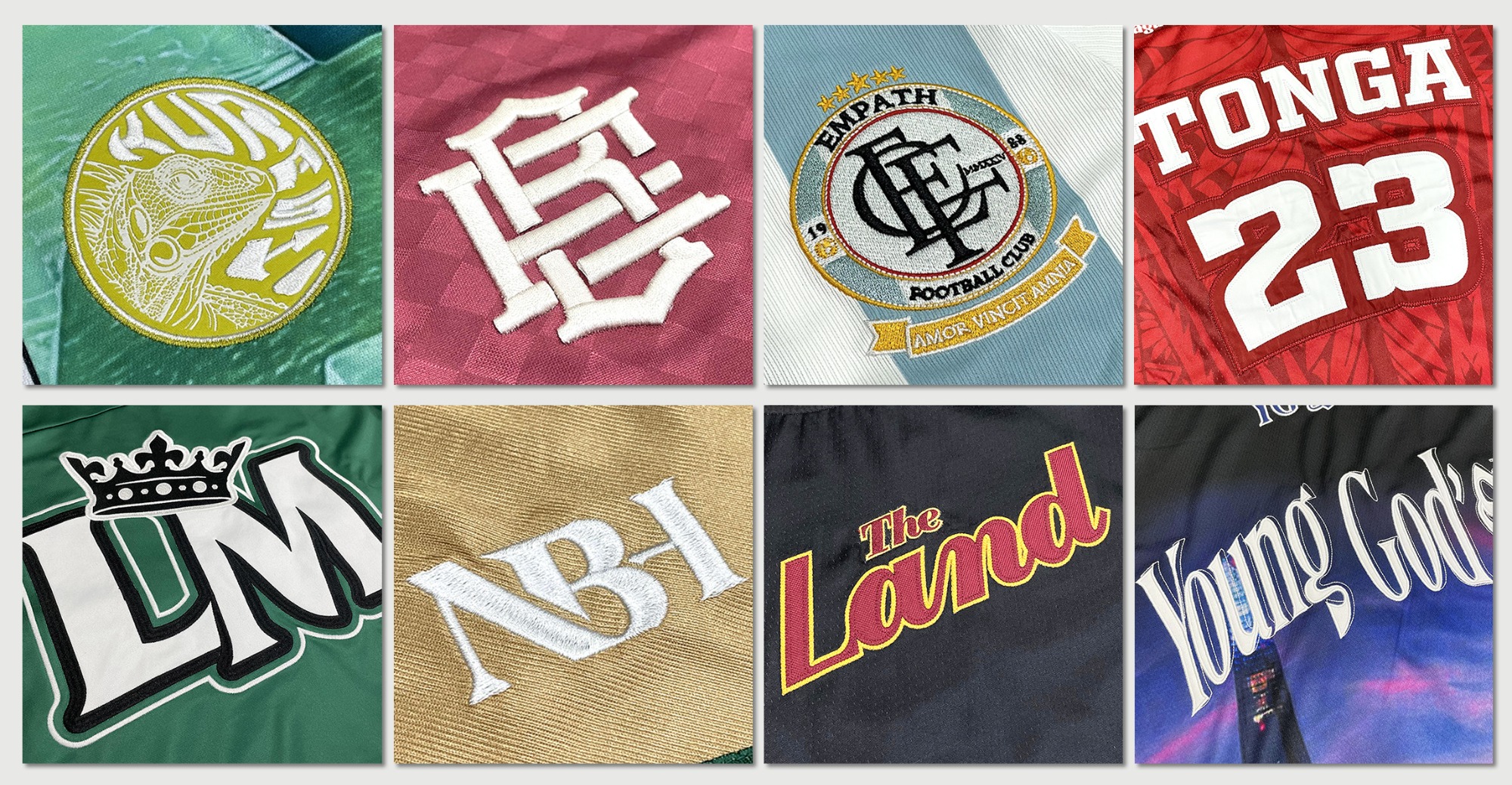 - Use embroidery for high-importance details like team logos, crests, player names, or sponsor badges.