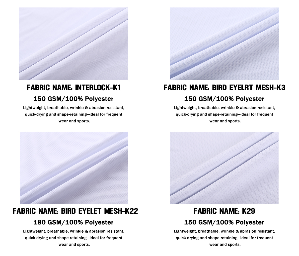 • Fabric:K1 / K3 / K22 / K29: